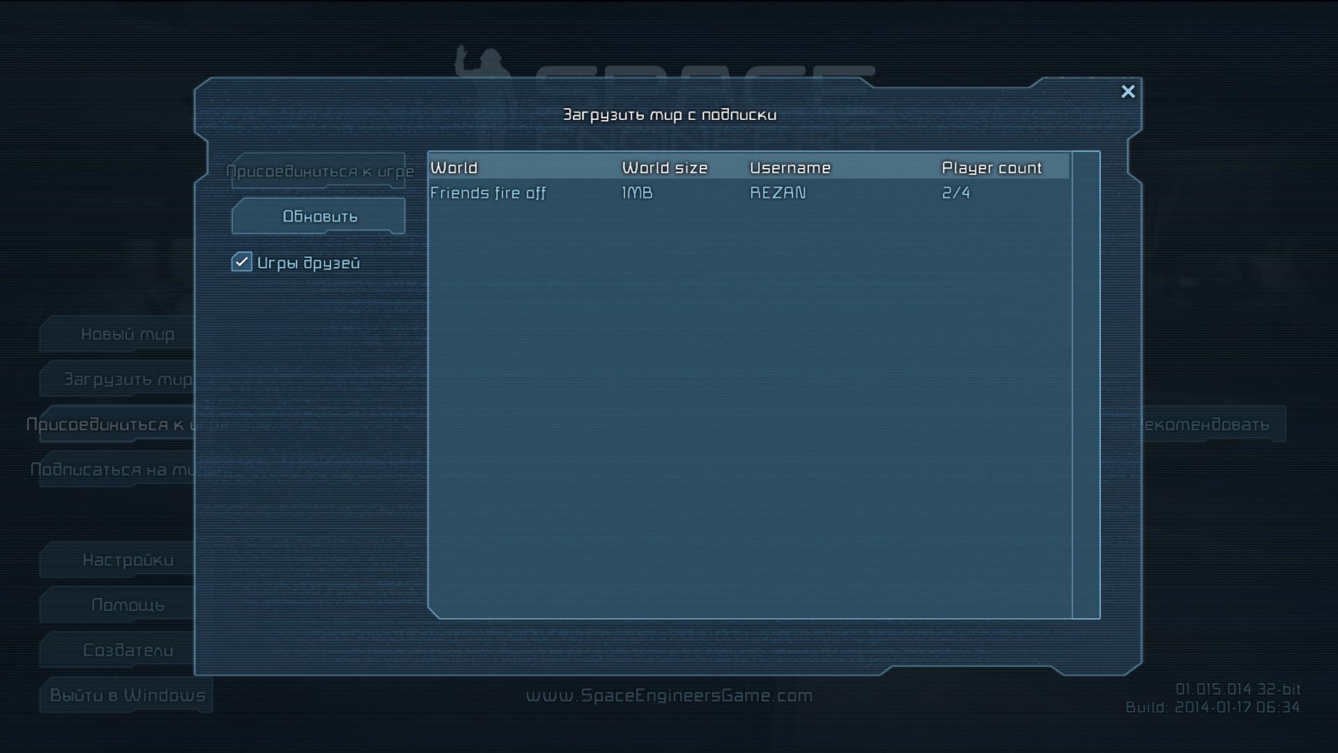 4.1) Join World (Присоединиться К Игре) => Friends Games (Игры Друзей) - Refresh (Обновить) - Присоединяемся к игре.