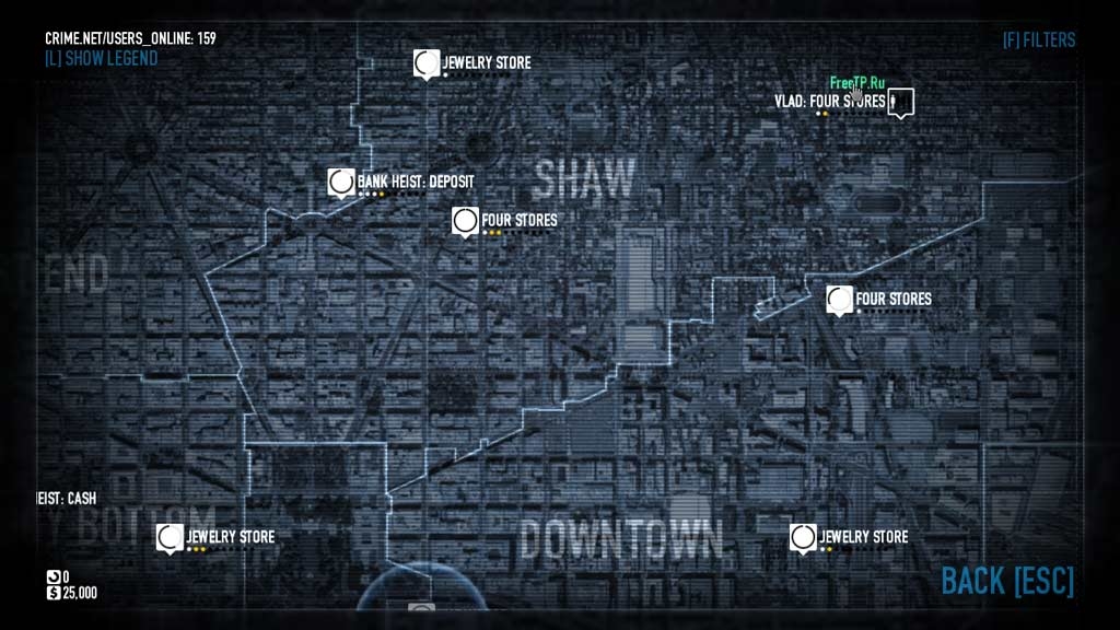 - Crime.Net (Играть в режиме Онлайн) => Выбираем доступное для ограбления место (рядом не должно быть символов человечков) => Настраиваем по своему вкусу => Start The Heinst => Ждем других игроков и начинаем игру.