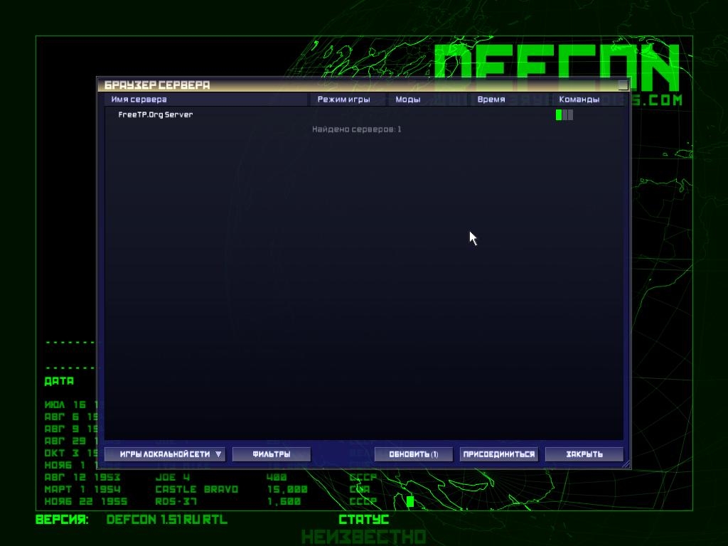 НАСТРОЙКА ДЛЯ СЕТЕВОЙ ИГРЫ: 1) Скачать Defcon торрент (версия 1.51 Rus)