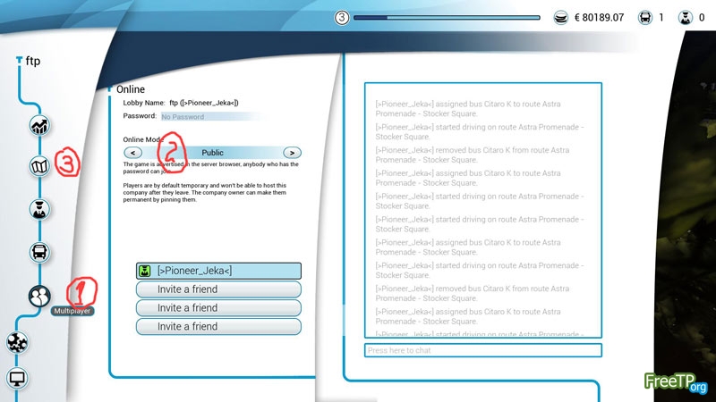 3.1) Загружаем Кампанию или создаём новую (в таком случае прийдётся пройти обучение) => При выборе маршрута указываем Multiplayer (1) => Online Mode - Public (2) => Routeplanner => Справа выбираем Маршрут и тычем Start Drive => Теперь игра доступна всем желающим.