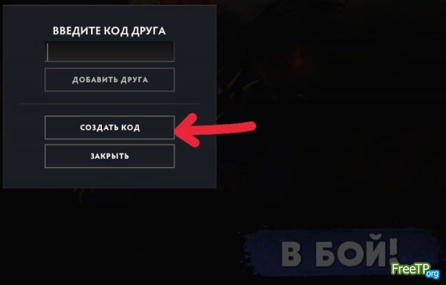 3. ПЕРВЫЙ игрок нажимает в верхнем левом углу значёк в виде группы - далее добавить друга. В открывшемся меню нажимаете "Создать код", и передаете его ВТОРОМУ игроку.